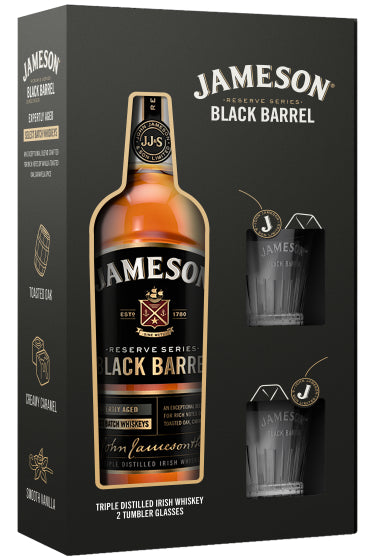 Jameson Black Barrel 700ml Gift Box with 2 Glass